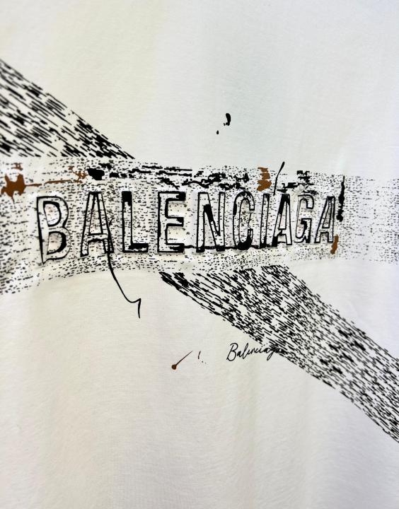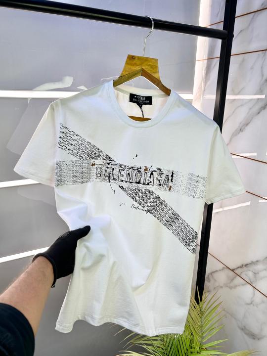 Home T-Shirts Sale Balenciaga White Embossed Print Premium Round Neck T-shirt With Carry Bag F2427-WH
