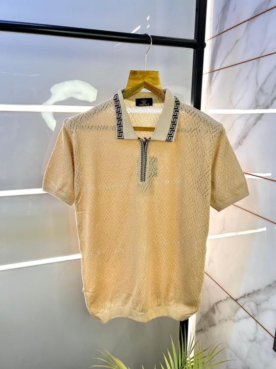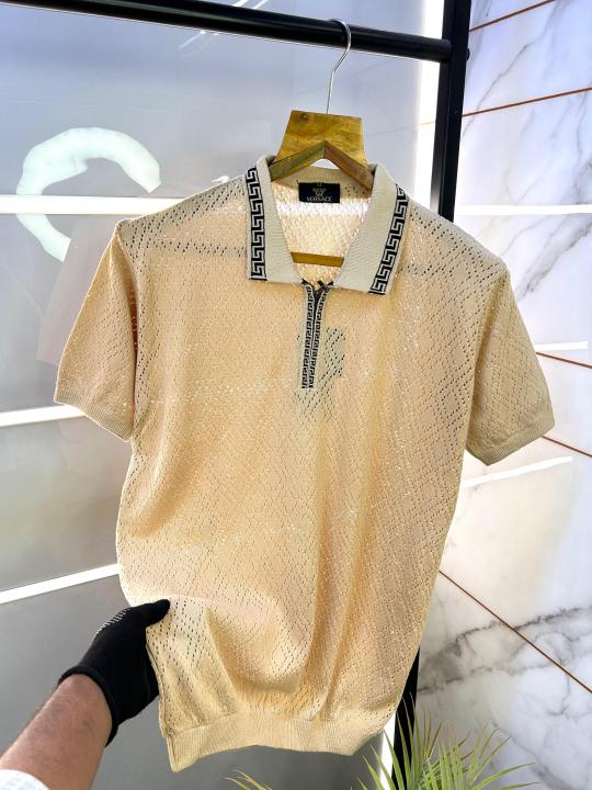 Home T-Shirts Sale Versace Brown Zipper Collar Neck Imported Premium T-shirt F2231-CR